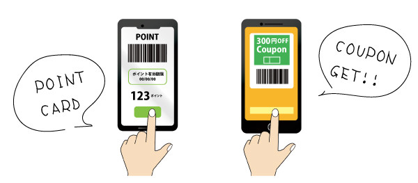 ①クーポンやポイントカード機能